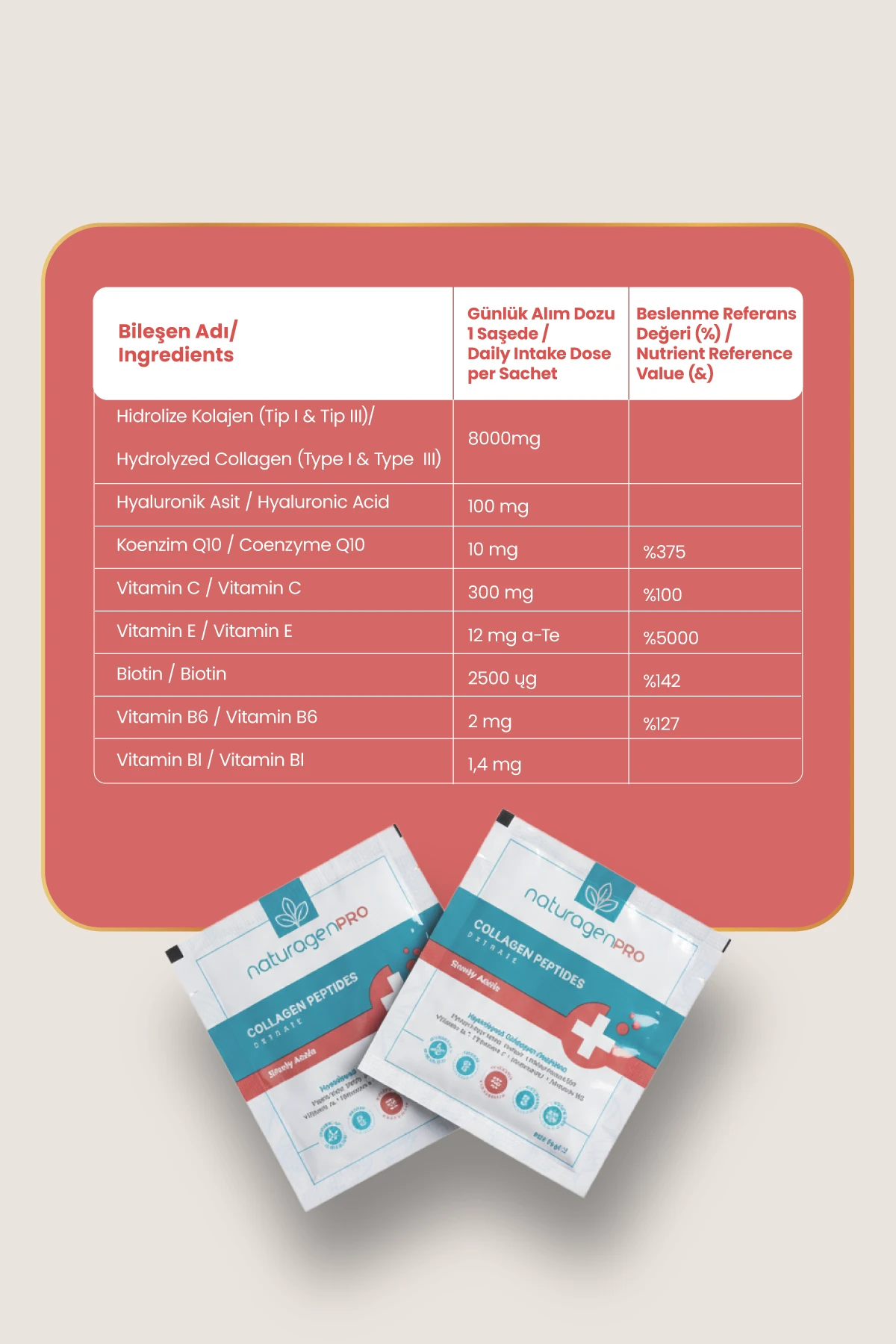 NUTRAGEN Pro Beauty Collagen مکملی پیشرفته با ترکیب کلاژن هیدرولیزه نوع 1 و 3، بیوتین، ویتامین C، زینک و هیالورونیک اسید است که بهطور علمی برای حفظ جوانی و درخشندگی پوست طراحی شده است. این ترکیب به بهبود خاصیت ارتجاعی پوست، کاهش چینوچروک، افزایش رشد مو و تقویت ناخنها کمک میکند. فرمولاسیون آن با جذب سریع و طعم طبیعی سیب سبز، تجربهای خوشایند و مؤثر از مراقبت زیبایی درونی ارائه میدهد.